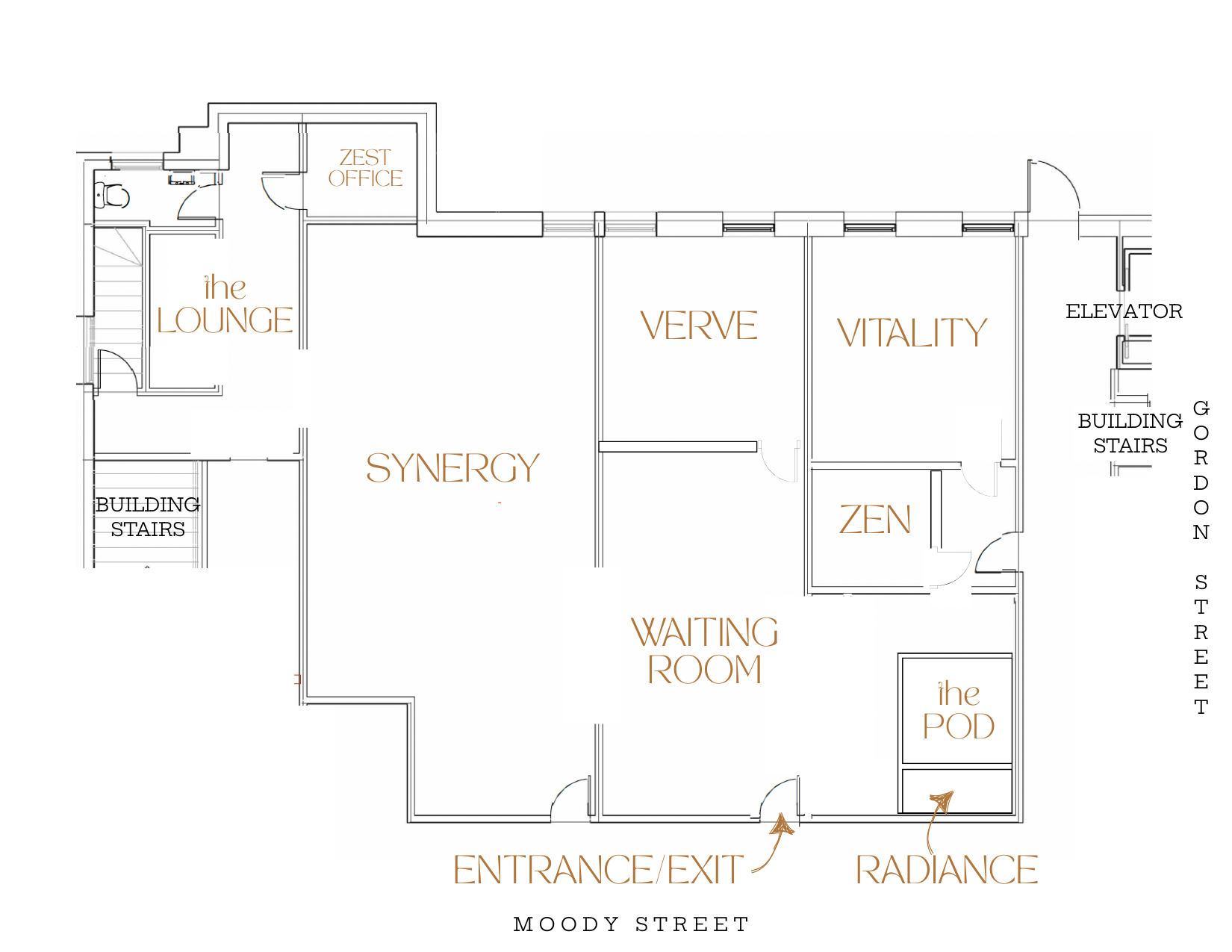 Entrances on Moody & Gordon Street